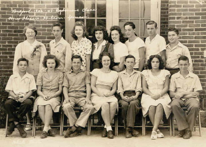John Harrison Render, James Layman, and Billy Welborn. Seated-Left to Right: James Lloyd Stewart, Nina Benton, Unknown, Ann Barnard, Shelby Fred Robinson, Betty June Fulkerson, Billy Samuel Drake. RHS Graduates Of 1949! |