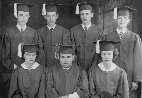 John Harrison Render, James Layman, and Billy Welborn. Seated-Left to Right: James Lloyd Stewart, Nina Benton, Unknown, Ann Barnard, Shelby Fred Robinson, Betty June Fulkerson, Billy Samuel Drake. RHS Graduates Of 1949! |