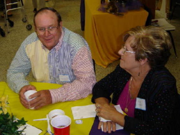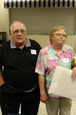 James Baker and his wife, Becky. Picture of James and Becky Baker taken by jrd at the Rockport School Reunion of 2006. James and Becky Baker make their home in Owensboro after James retired from Alcoa Aluminum. He now has time to act the retiree and enjoys working with wood. James has three children, two boys and a girl. At this writing there are eight grandchildren and several great-grandchildren. For fun, James likes to remodel and build anything that pertains to a home. To some, James is considered a cabinet maker. |